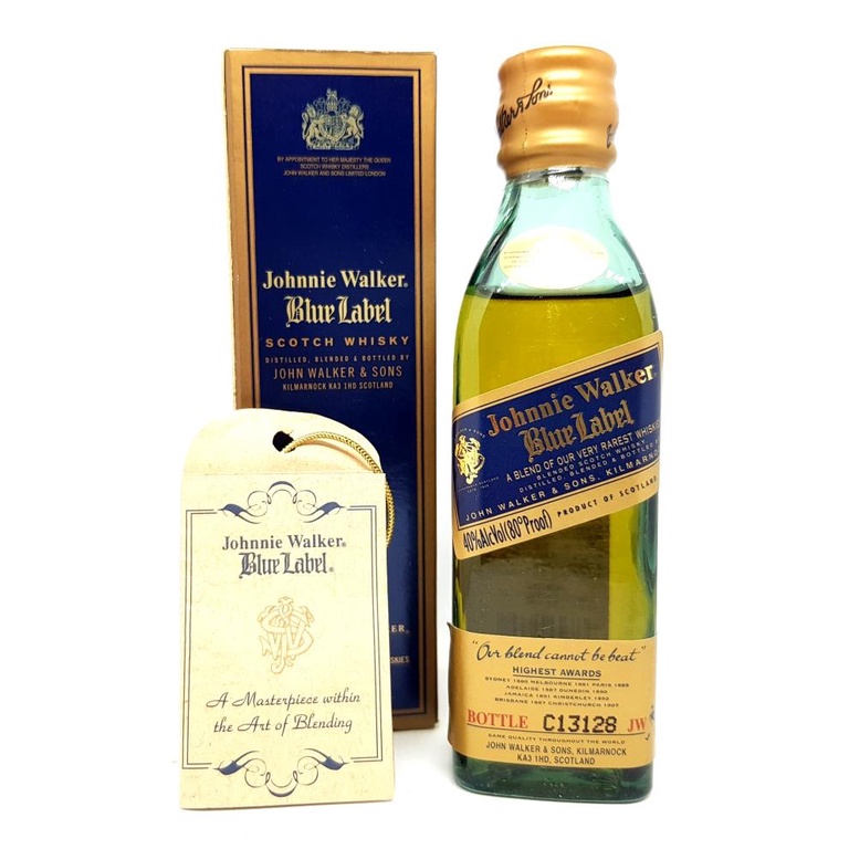 BUY Johnnie Walker Blue Label 50ml - best whiskey online Johnnie Walker Blue Label 50ml $ 25.00 Johnnie Walker Blue Label is an unrivaled masterpiece. It is an exquisite blend made from some of Scotland's rarest and most exceptional Scotch Whiskies. Only one in every ten thousand casks has the elusive quality, character and flavor to deliver the' remarkable signature taste of Johnnie Walker Blue Label.