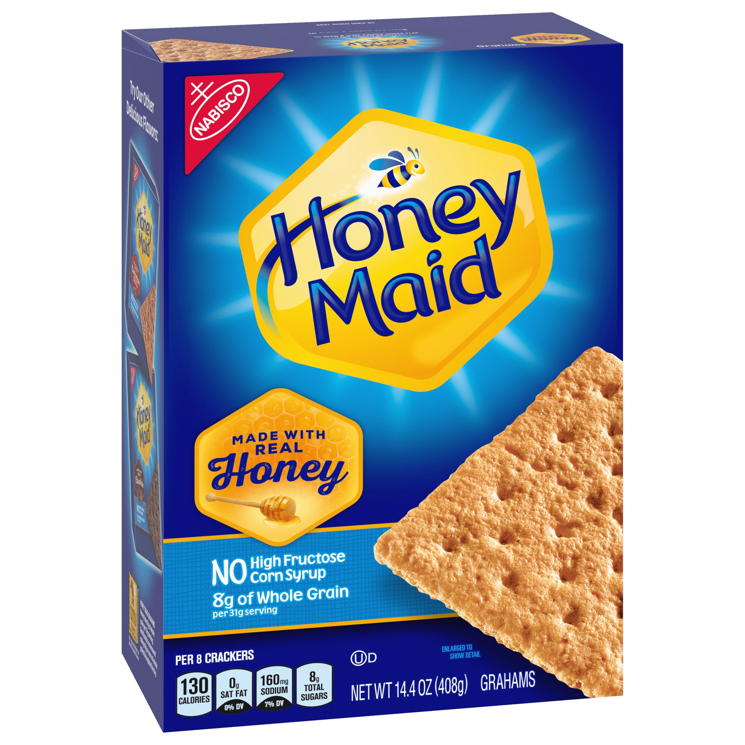 Honey Maid Graham Crackers (14.4-Ounce Boxes, 4-Pack) Honey Maid Graham Crackers are made with real honey and contain no high-fructose corn syrup, saturated fat, or cholesterol. Perfect on their own, Honey Maid Graham Crackers are also delicious when paired with fruit and spreads, crumbled on ice cream, or added to recipes.