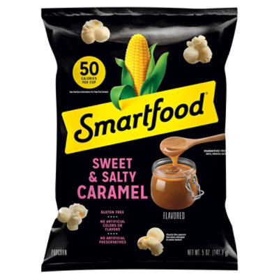 Smartfood™ Smart 50 White Cheddar Popcorn, 0.5 oz - Kroger 0.5-ounce bag of Smartfood Smart 50 White Cheddar Popcorn; Nutritional Information. Kosher. Nutrition Facts. 1.0 servings per container. Serving size. Amount per serving. Calories 70 % Daily value* Total Fat 2.5g 4%. Saturated Fat 0g 0%. Trans Fat 0g. Cholesterol 0mg 0%. Sodium 100mg 4%. Total Carbohydrate 9g 3%. Smartfood - Smart 50 Popcorn calories, carbs & nutrition facts ... Nutritional Info. Carbs 11 g. Dietary Fiber 2 g. Sugar 0 g. Fat 4 g. Saturated 0 g. Polyunsaturated--g. Monounsaturated--g. Trans 0 g. Protein 2 g. Sodium 95 mg. Potassium 0 mg. Cholesterol 0 mg. Vitamin A 0 % Vitamin C 0 % Calcium 0 % Iron 0 % ... Smartfood Smart 50. Smart 50 White Cheddar Popcorn. Smartfood. Smart 50 Popcorn, Sea Salt. Nutrition Facts for Smartfood Smart 50 Sea Salt Popcorn Smart 50 Sea Salt Popcorn Nutrition Facts Serving Size cups 3 3/4 cups = 28g Amount Per Serving 140 Calories % Daily Value* 11% Total Fat 7g 5% Saturated Fat 1g Trans Fat 0g 0% Cholesterol 0mg 7% Sodium 150mg 6% Total Carbohydrate 17g 11% Dietary Fiber 3g Total Sugars 0g 0% Includes 0g Added Sugars Protein 3g 0% Vitamin D 0mcg 0% Calcium 0mg