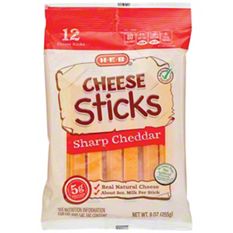 Calories in HEB Cheese Sticks Sharp Cheddar and Nutrition Facts - FatSecret 80. Fat. 7g. Carbs. 0g. Protein. 5g. There are 80 calories in 1 stick (21 g) of HEB Cheese Sticks Sharp Cheddar. Calorie breakdown: 76% fat, 0% carbs, 24% protein.