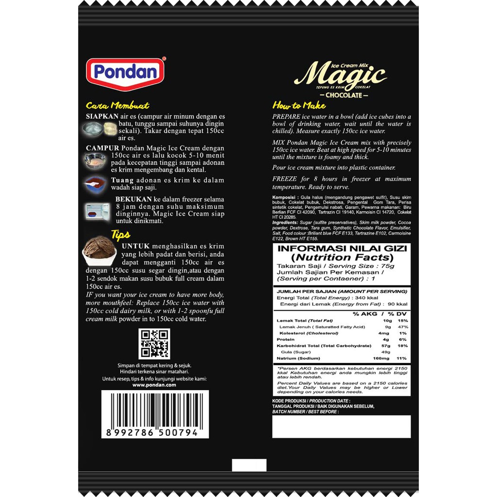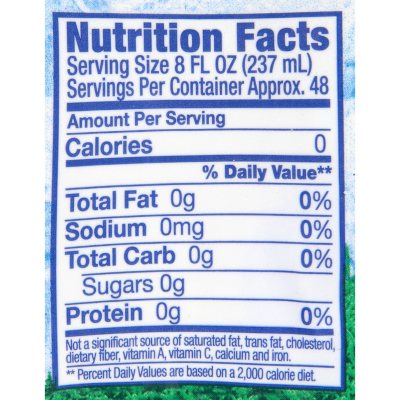 Ice water nutrition label