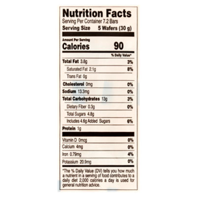 Nabisco Nilla Wafers Vanilla Mini - Stop & Shop Per 20 Wafers: 140 calories; 1.5 g sat fat (8% DV); 115 mg sodium (5% DV); 11 g total sugars. Contains a bioengineered food ingredient. Nabisco. This package is ...