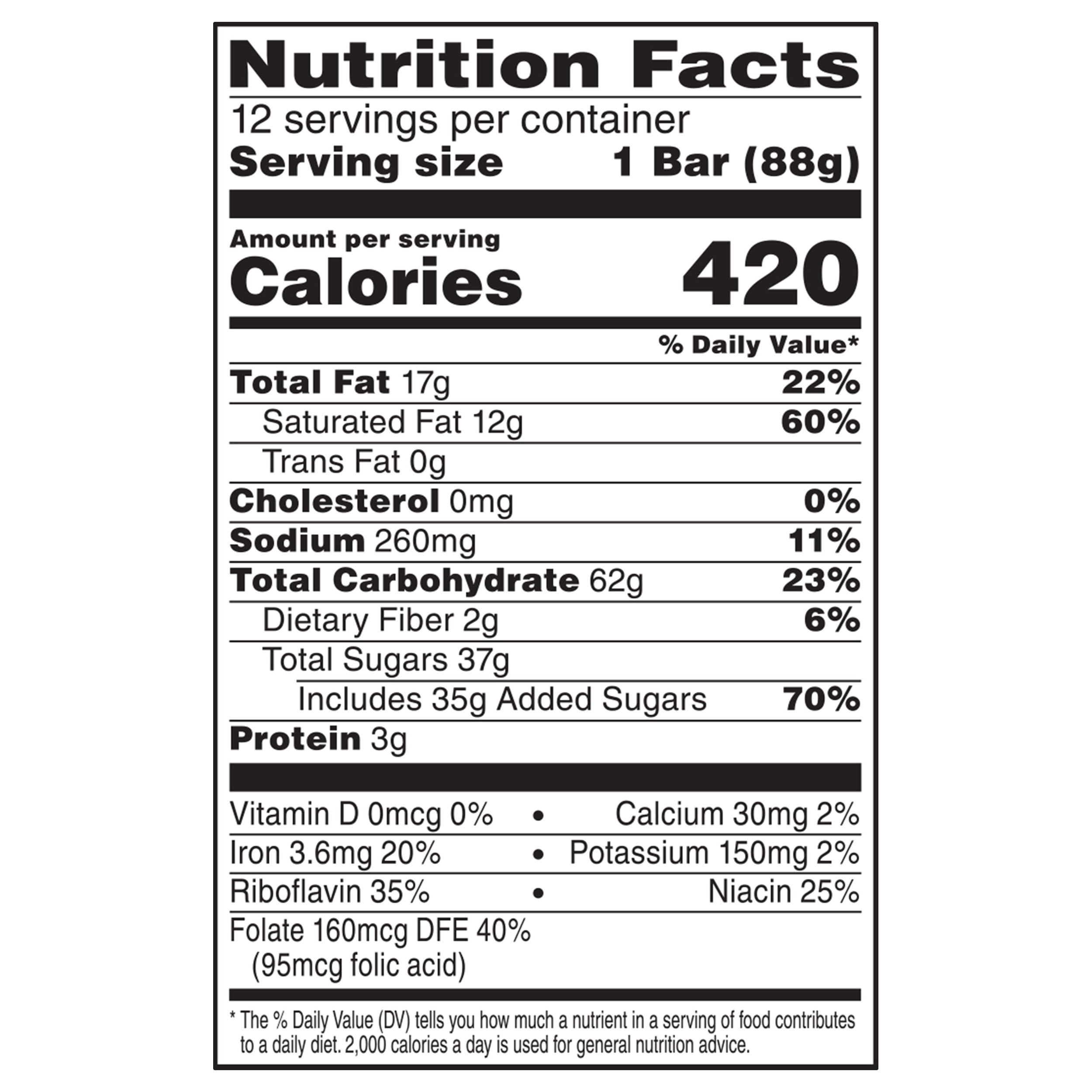 smartlabel.kelloggs.com › en_US › ProductKellogg's® Rice Krispies Treats® Original Bars - SmartLabel™ 90 Calories 0.5 g Sat Fat 105 mg Sodium 8 g Sugar Nutrition Facts Servings Per Container 1 Serving Size 1 Bar (22 g) *The % Daily Value (DV) tells you how much a nutrient in a serving of food contributes to a daily diet. 2,000 calories a day is used for general nutrition advice. Information last updated on 04-03-2023 by Kellogg's