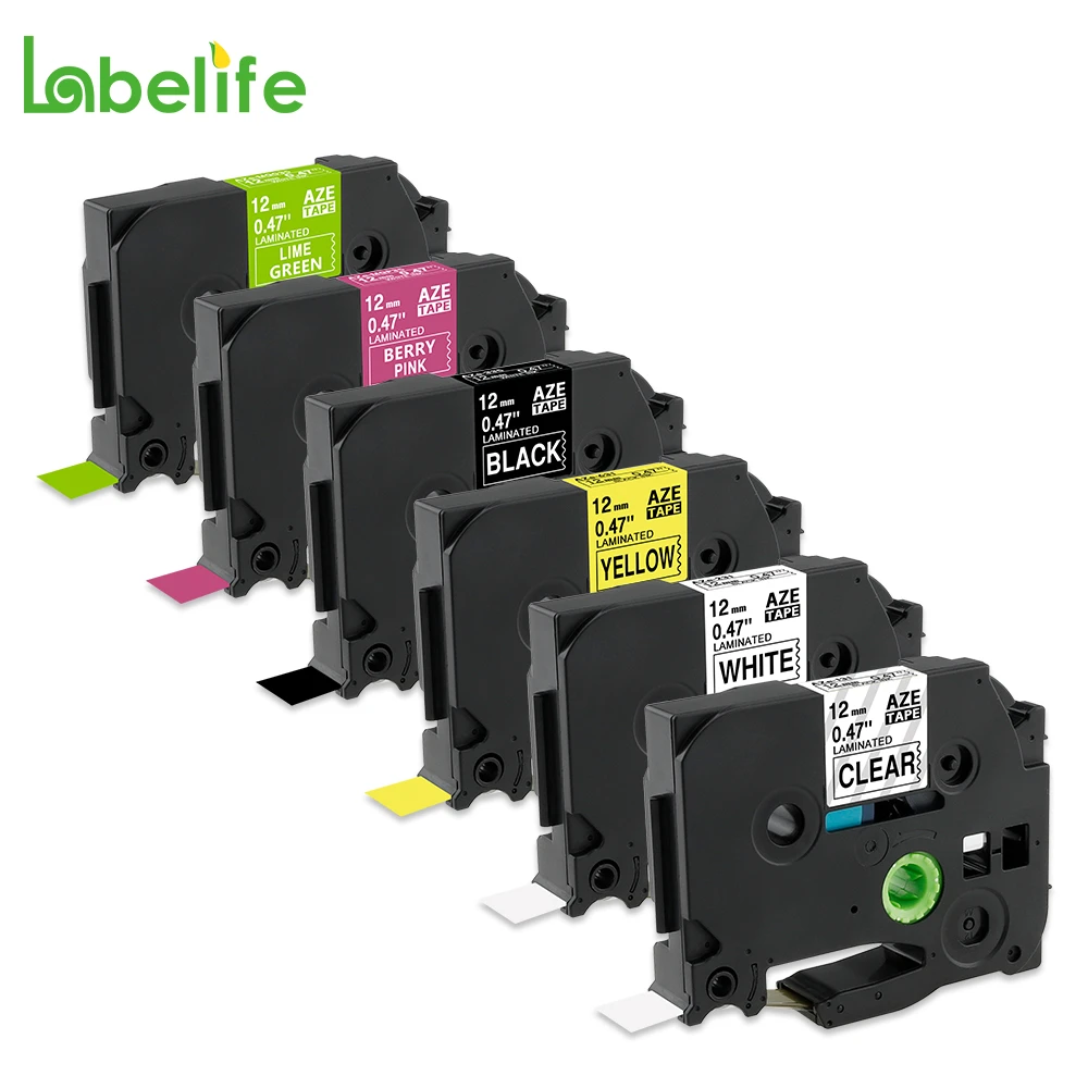 Ptouch Tape 12mm 0.47 Inch Laminated Clear/Purple/Blue/Pink/Lemon Yellow/Mint Green Replacement for Brother TZe Tape Compatible with Brother P Touch ...